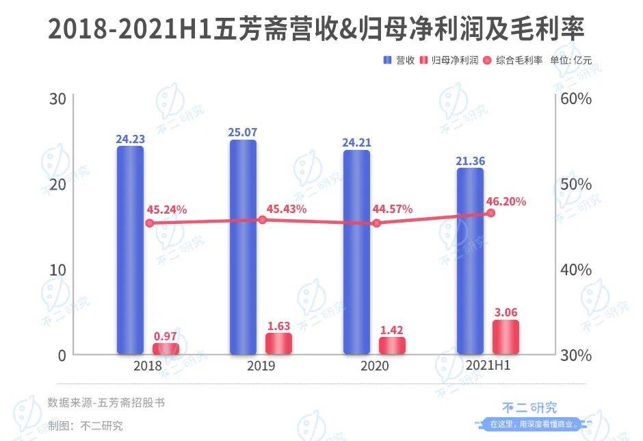 「不二研究」发现,五芳斋在新版招股书中更新了2021年上半年的业绩数据。