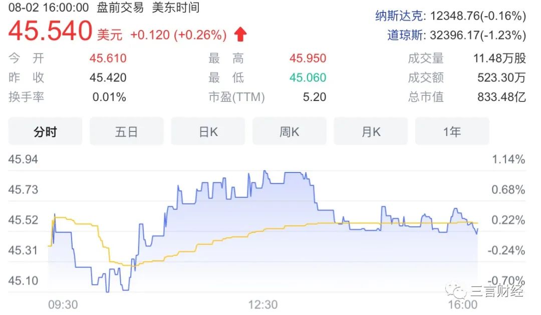 中石油美股股价报45.54美元,总市值达833.48亿美元。