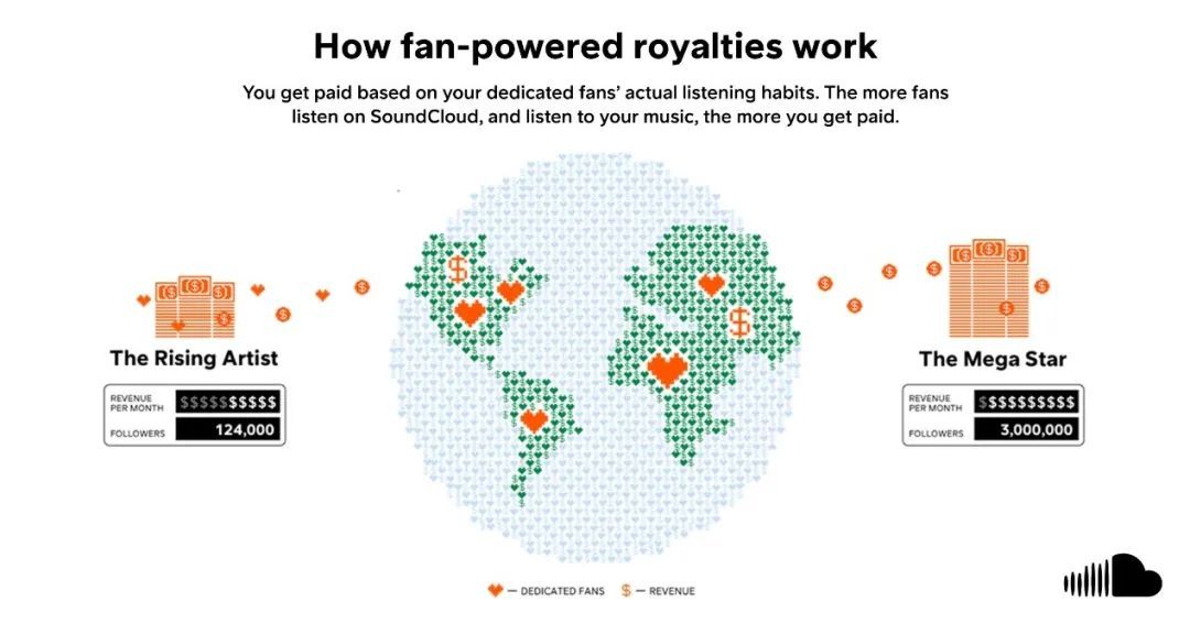 2021年3月,SoundCloud推出了类似的模式,却取了一个更易于理解的名字——Fan-powered Royalties(粉丝赋能的版税),一时间大获好评。