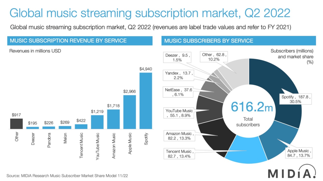 三大的牵绊并非只针对Spotify,而是一视同仁地让所有流媒体都为他们打工,并且不希望一家独大。或许是出于这个原因,中小流媒体平台受到三大的压制相对较少,探索更为自由。
