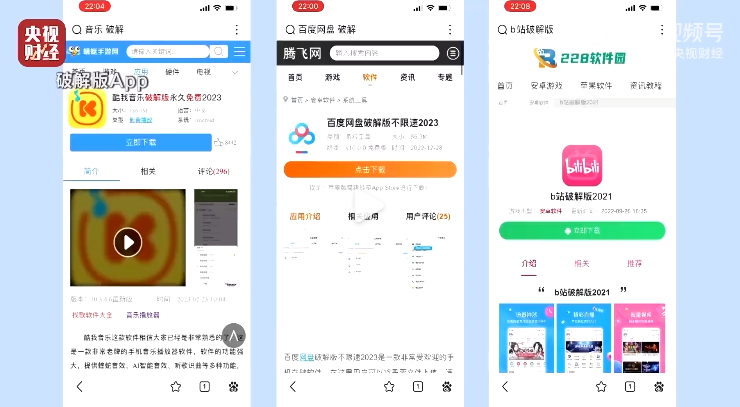 不少人都喜欢在网上追剧,当你要看的电视剧分布在不同的平台时,价格不菲的视频网站会员就让不少人感到肉疼。于是,破解版APP应运而生,这些APP声称可以让用户免费观看各个视频平台的VIP会员,只需要轻松点击即可安装使用。