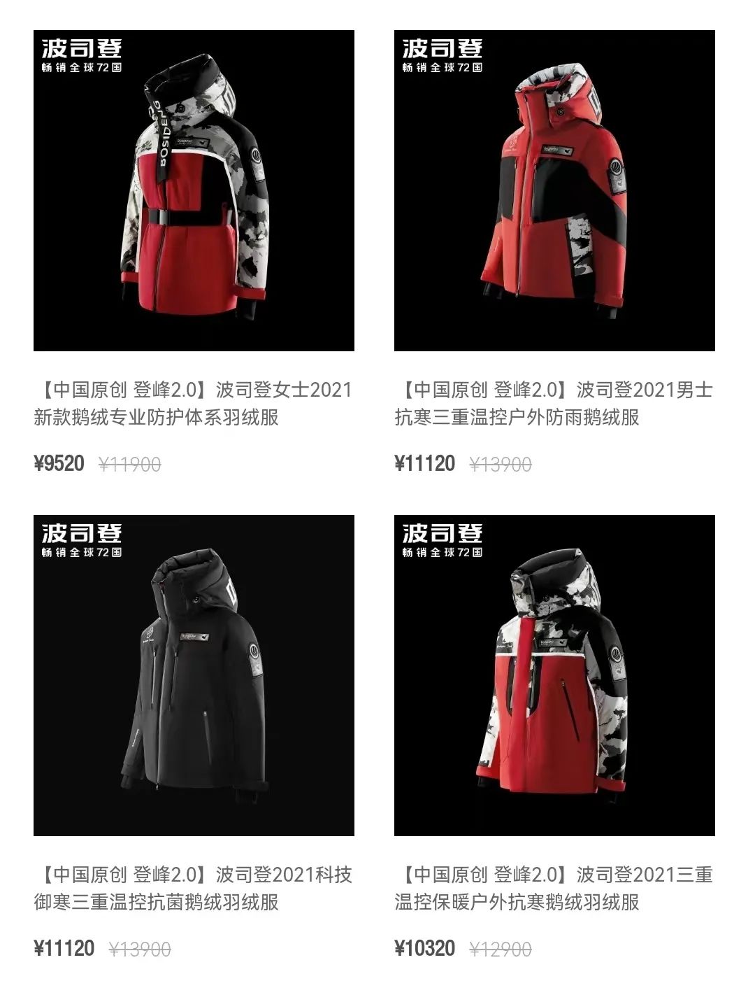 显然,2000 元的吊牌均价并不能满足波司登的高端化野心。2021 年,波司登还推出了万元以上的“登峰2.0”系列。