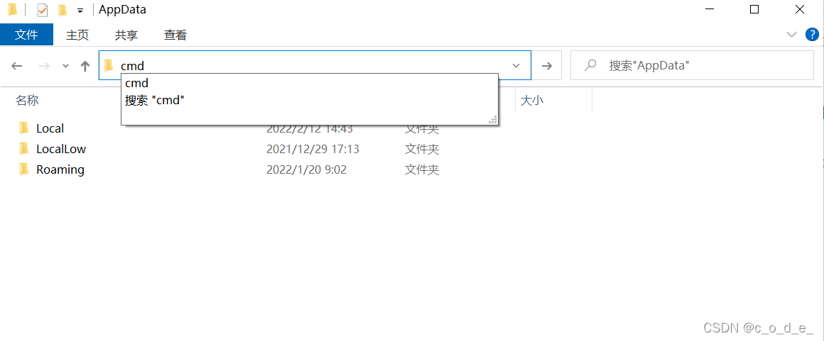 *小技巧:文件夹中打开C:\Users\Administrator\AppData\Local,然后在文件路径中输入cmd,回车即可自动打开cmd对应目录的控制台*