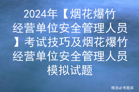 烟花爆竹经营单位安全管理人员考试技巧是安全生产模拟考试一点通生成的,烟花爆竹经营单位安全管理人员证模拟考试题库是根据烟花爆竹经营单位安全管理人员最新版教材汇编出烟花爆竹经营单位安全管理人员仿真模拟考试。2024年【烟花爆竹经营单位安全管理人员】考试技巧及烟花爆竹经营单位安全管理人员模拟试题