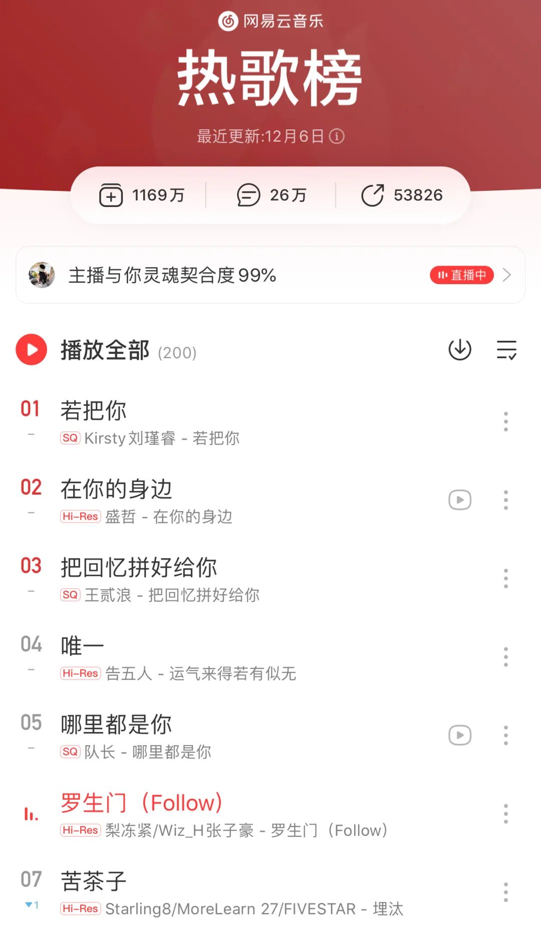 网易云热歌榜TOP5里没有一首新歌。《若把你》《在你的身边》《把回忆拼好给你》《唯一》《哪里都是你》都是2017-2020年的歌。不难看出,在线音乐平台与短视频的热歌榜单正在变得趋同。网易云和Q音里上榜的《赐我》《Letting Go》《在你的身边》都是抖音的热门BGM。