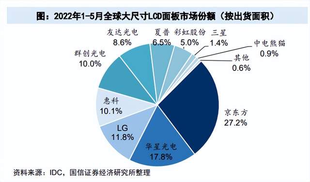 其次,从市场产能占有率来看,随着日韩企业的退出,京东方和TCL华电已经坐稳了行业头部。随着市场集中度的不断提升,强技术、全布局、高产能的京东方拥有更大的竞争优势,能够降低周期波动带来的冲击。