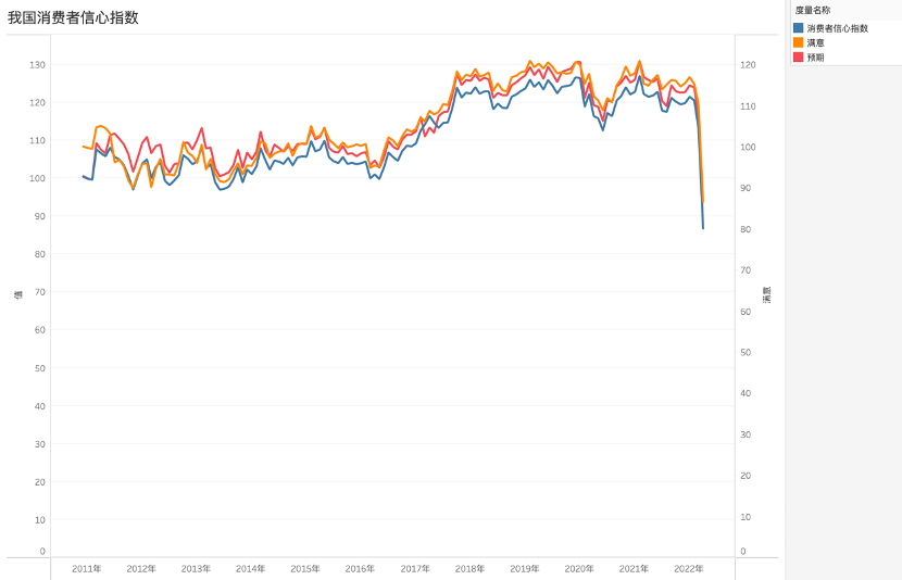 消费者信心指数一直被视为评测零售业景气值的重要指标,在过去十余年时间里,信心指数整体上呈现了稳步上升的态势,一方面这是我国宏观经济保持稳步增长的结果,另一方面,我国消费者内心预期上对未来也是充满信心,尤其在疫情刚刚爆发的2020年初,虽然短期内指数快速下跌,但其后迅速修复。