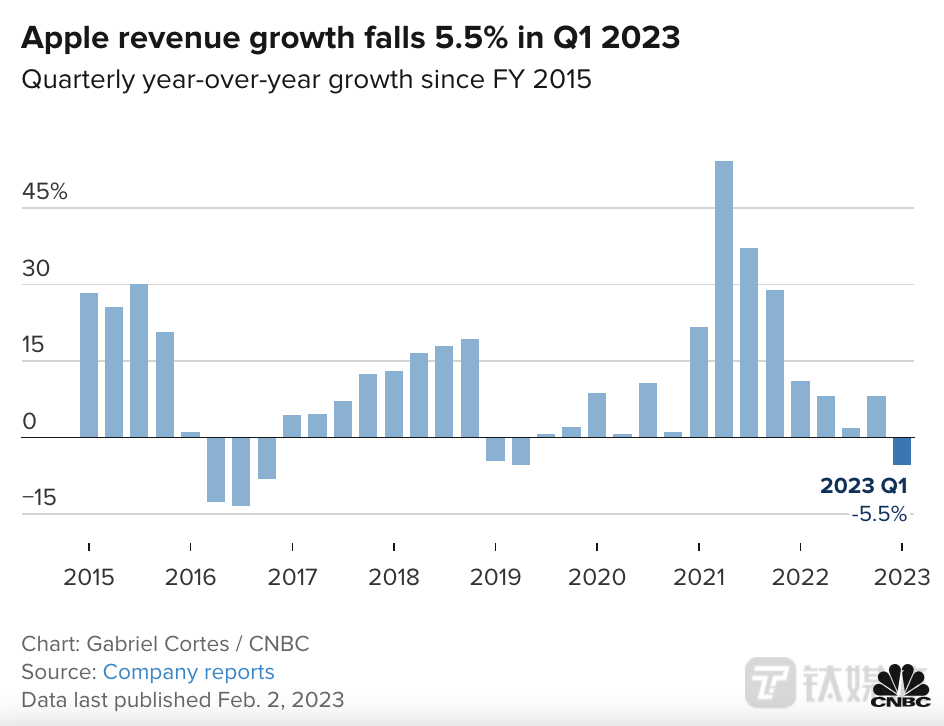2023年第一财季收入增长下降5.5%(来源:CNBC)
