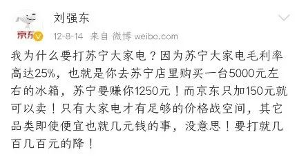 刘强东在内部信中提到,“以为掌握了定价权,丝毫不再关注我们的低价优势,这样下去早晚会成为第二个苏宁”。
