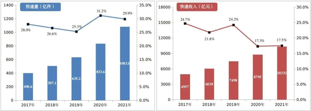 数据显示,快递行业正在触顶,2022年累计1105.8亿件,同比增长仅为2.1%,2021年的数据是1083亿件。