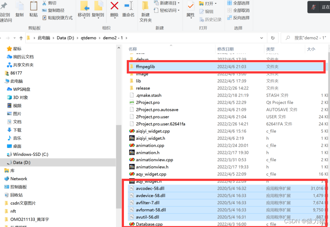 1.第一步:将ffmpeg文件拷贝到qt工程目录下