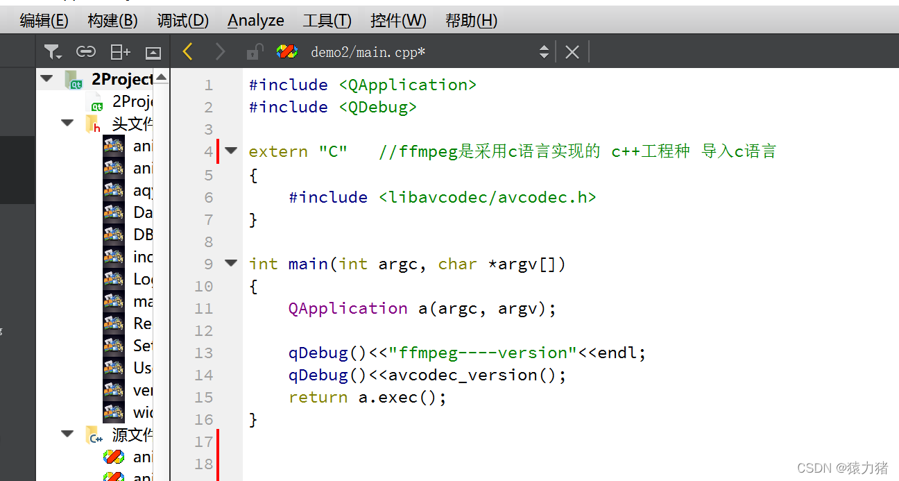 extern "C" //ffmpeg是采用c语言实现的 c++工程种 导入c语言