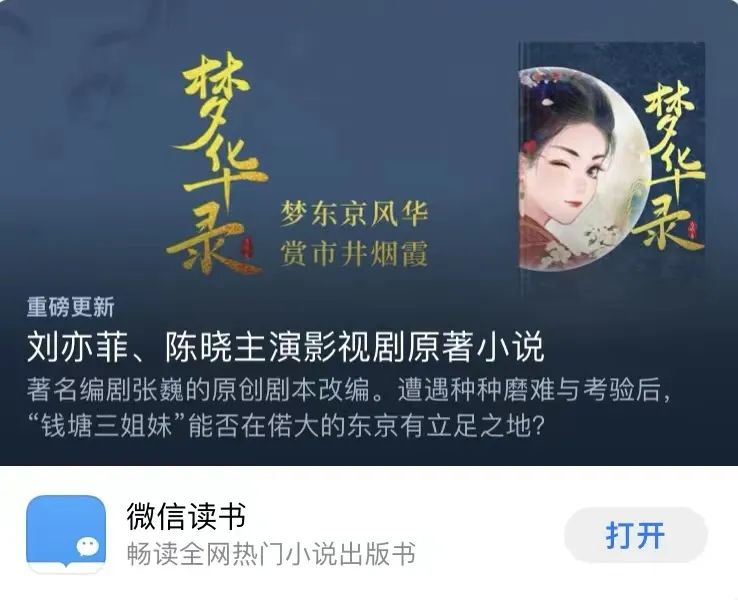 因此,我们显然不能从收入的角度来评估微信读书的对腾讯的价值。在微信读书的App Store宣传页面中,出现了《梦华录》《警察荣誉》的原著小说。实际上,在上半年的爆款影视剧中,出版物改编作品与网文IP分庭抗礼,尤其是现实主义题材。虽然微信读书并不拥有这些作品版权,然而它所积累的阅读大数据,可以筛选出最受读者关注的作品,从而为腾讯的影视战略提供有价值的参考。