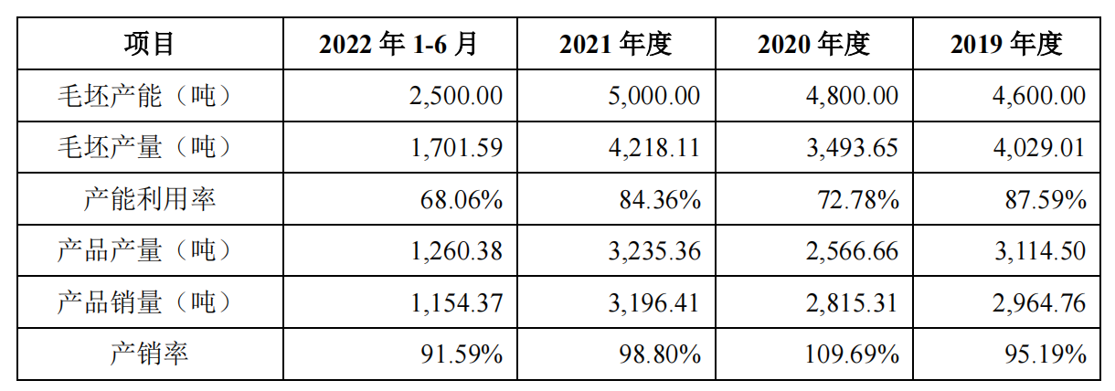 值得注意的是,随着募投项目投产,公司未来业务规模扩大,对营运资金需求也将进一步增加。同时,招股书显示,公司报告期内的产能利用率分别是87.59%、72.78%、84.36%、68.06%,非但没有饱和,甚至还出现了下滑。而公司计划此后每年增2800吨的产能,不得不让人质疑公司是否能消化。(本文首发钛媒体APP,作者/翟碧月 )