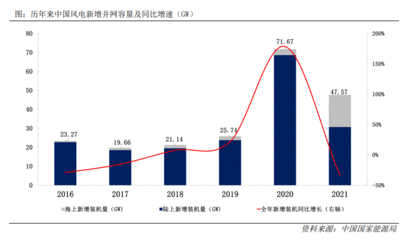 恰恰相反,风电在2021年实现高速发展。只因为:海风抢装来了。