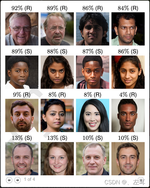 图片来源PANS,部分人脸照片分辨的准确率(S代表合成,R代表真人)