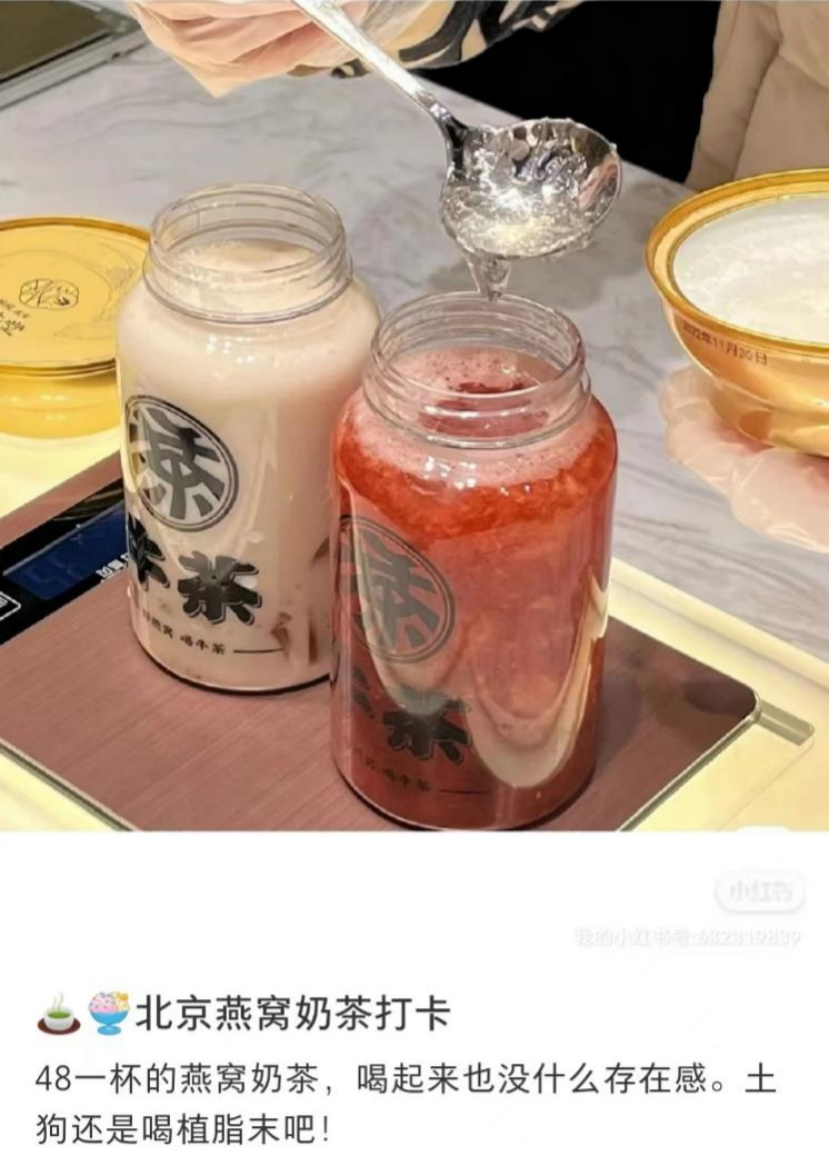 “尝了一口只觉得齁甜,口味还不如10多块钱一杯的奶茶,和普通奶茶的差别就仅仅在那么一小勺燕窝的差别上,我觉得性价比不高。”一名年轻女性消费者,向价值星球描述了自己尝试燕窝奶茶时的“踩雷”经验。