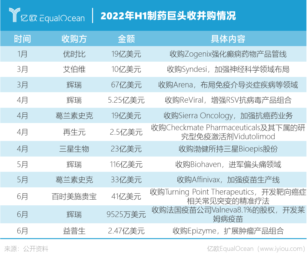 赚得盆满钵满的辉瑞,自今年3月份开始就发起了4项收购。这一数量在制药巨头中名列前茅。此外,它还贡献了今年上半年交易金额最大,也是唯一一起价值超百亿美元的收购事项,即116亿美元拿下了Biohaven,强势进军偏头痛领域。