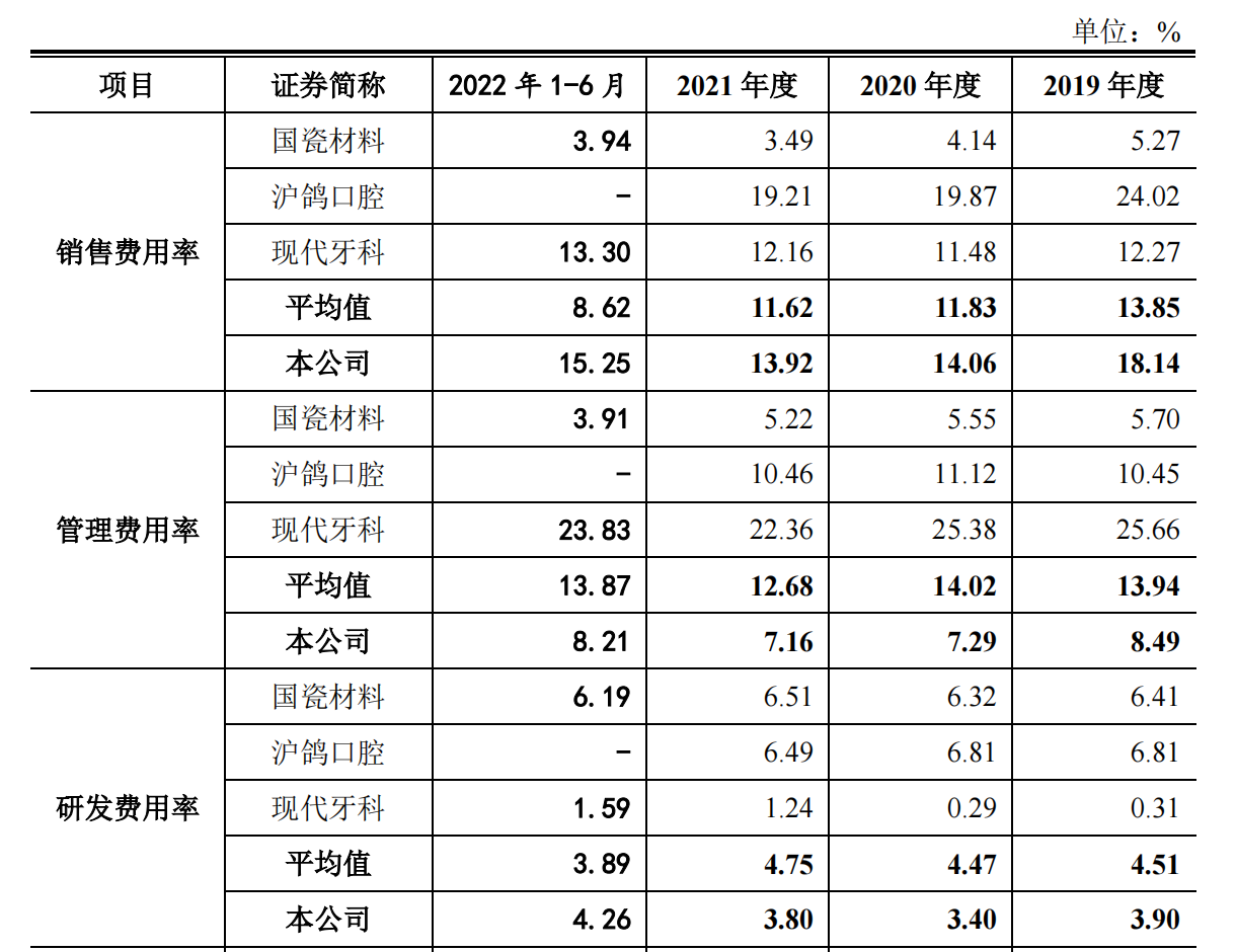 随着近年我国口腔保护、健康消费意识逐步增强,及社会老龄化程度加深,作为兼具医疗健康和消费升级属性的行业,口腔医疗一度成为热门赛道,而公司所在的氧化锆陶瓷行业也十分拥挤。在竞争中爱迪特采取牺牲利润换增长的策略,导致其毛利率下滑且大幅低于同行。而在重销售轻研发的现状下,公司产品也难言有突出的竞争力。