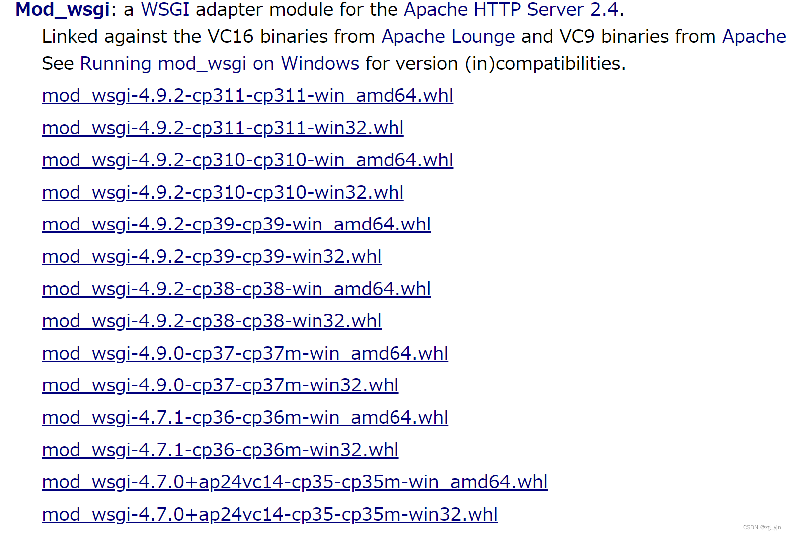 下载地址:https://www.lfd.uci.edu/~gohlke/pythonlibs/#mod_wsgi