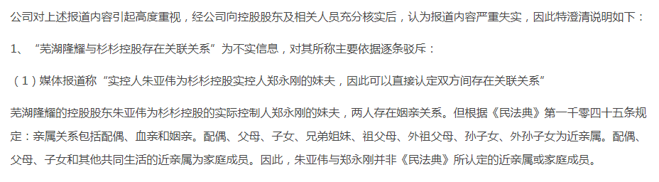 质疑观点指出,郑永刚的三妹夫朱亚伟,即上海钢石实控人吴军辉的三姨夫,作为芜湖隆耀实控人长期在杉杉系多家公司中担任董监高职务。吉翔股份的“澄清”也再度被指“帮倒忙”,为何隐瞒此事5个月之久?