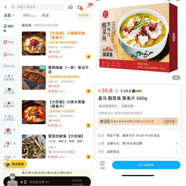 杭州某酸菜鱼外卖/盒马鲜生预制菜