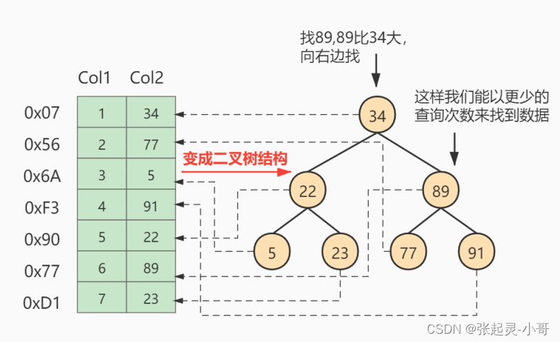 假如给数据使用 二叉树 这样的数据结构进行存储,如下图所示