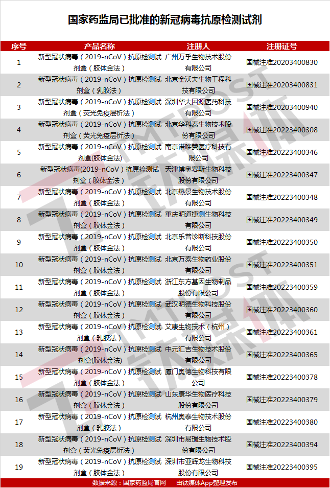 截至3月23日,已有19家新冠抗原检测试剂盒正式上市,其中还有休息日过批的,与当年新冠核酸检测试剂的审批相比,审核中心这次可谓是的“大手笔”。