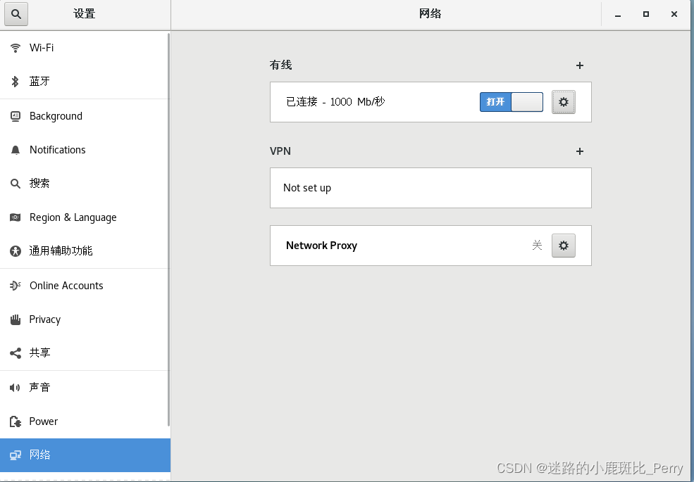 解决问题1之后发现 网络 中只能设置VPN相关的内容没有 有线网络 的设置。且桌面右上角没有网络连接的图标。