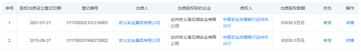 天眼查显示,今年4月宏义集团持有的子公司莲花湖实业13亿股权遭到冻结,此前,这笔股权均被公司质押套现。