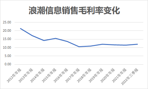 2012年至2021年,十年间,浪潮信息的营收从21.91亿元飙升至670.48亿元,但毛利率却从21.44%下降至11.44%,虽然截至2022年Q3,浪潮信息的毛利水平提升至12.02%,但十年来毛利率水平已接近腰斩。