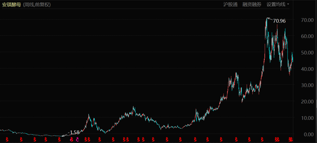 基于这样过于出色的市场表现,安琪酵母在资本市场上的估值水涨船高。市值从上市之初的40亿,最高峰曾超过500亿元,涨幅超过十倍。