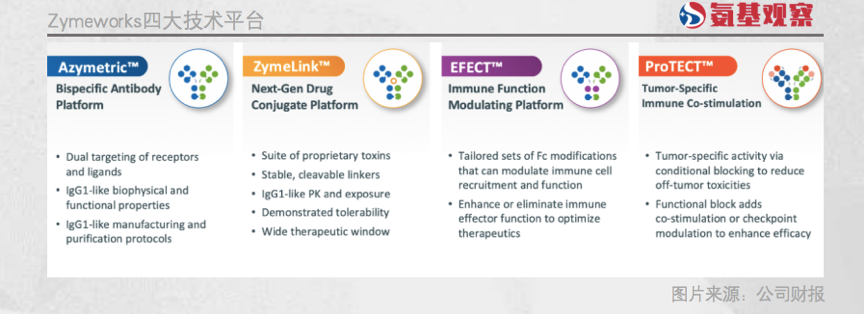 另外,Zymeworks还拥有PROTECT(能在减少全身毒性的同时提高疗效)、EFFECT(主要作用是定制和优化免疫反应)技术平台。