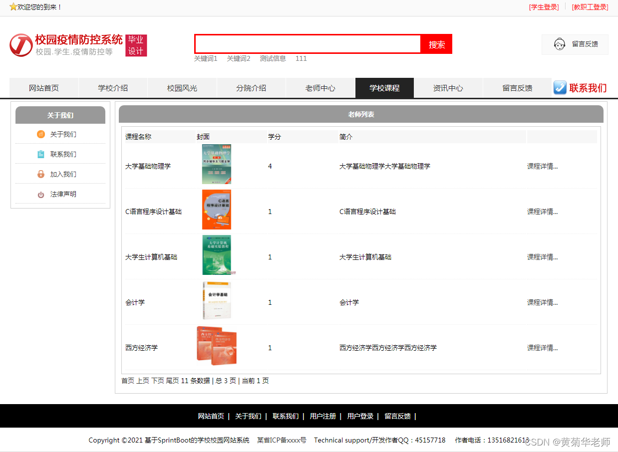 学校课程:列出学校所开设所有课程,点击课程详情可以查看课程