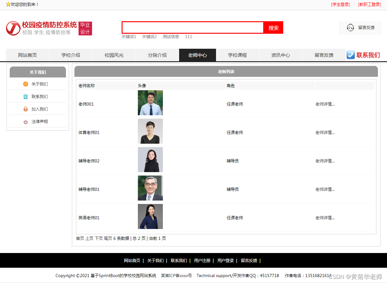 老师中心:列出学校所有老师,尅点击查看详情了解老师信息