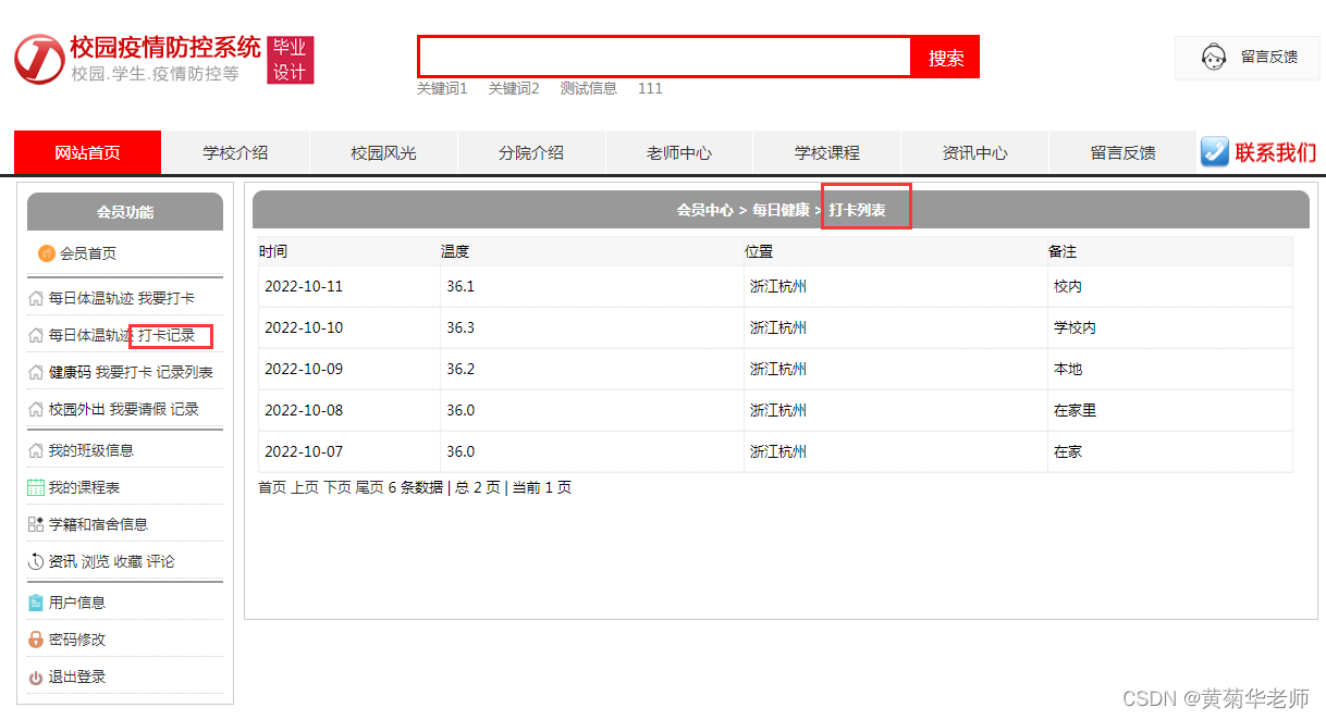 体温行程记录:查看自己每天录入的体温行程记录列表