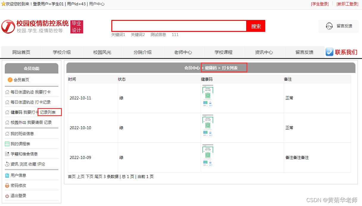 健康码记录:查看自己录入的健康码记录列表
