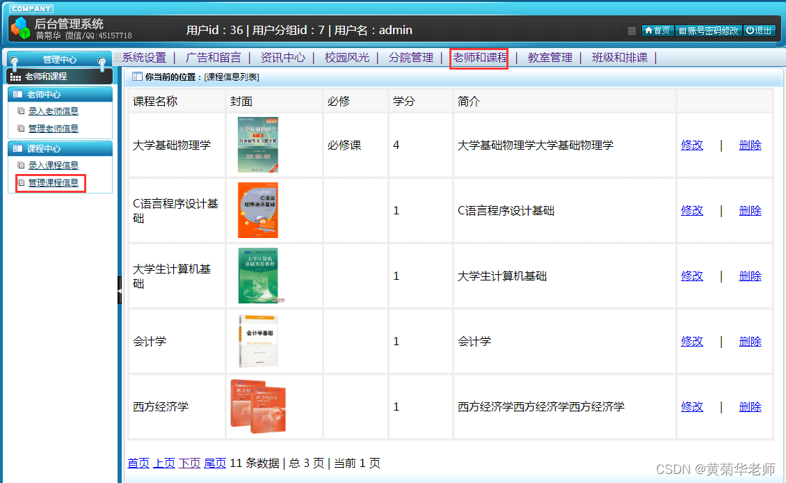 课程管理:管理已经录入课程,支持修改和删除