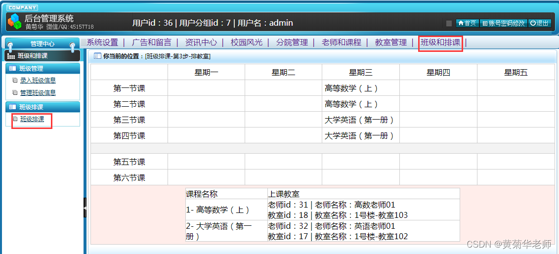 班级排课:根据班级,1排课,2排老师,3排教室,按123步骤给班级排课