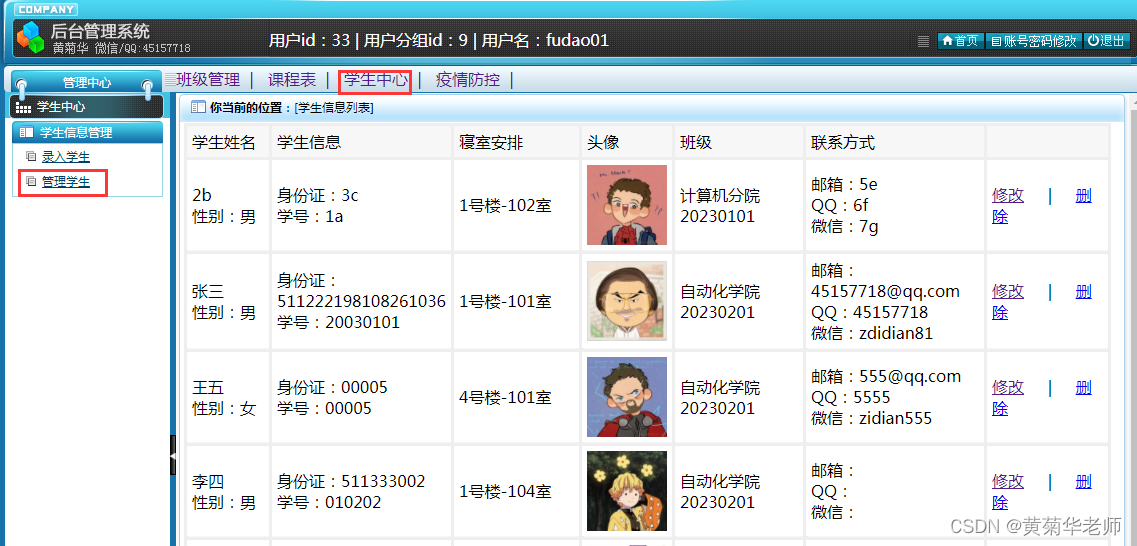 学生管理:支持对录入的学生信息进行修改和管理