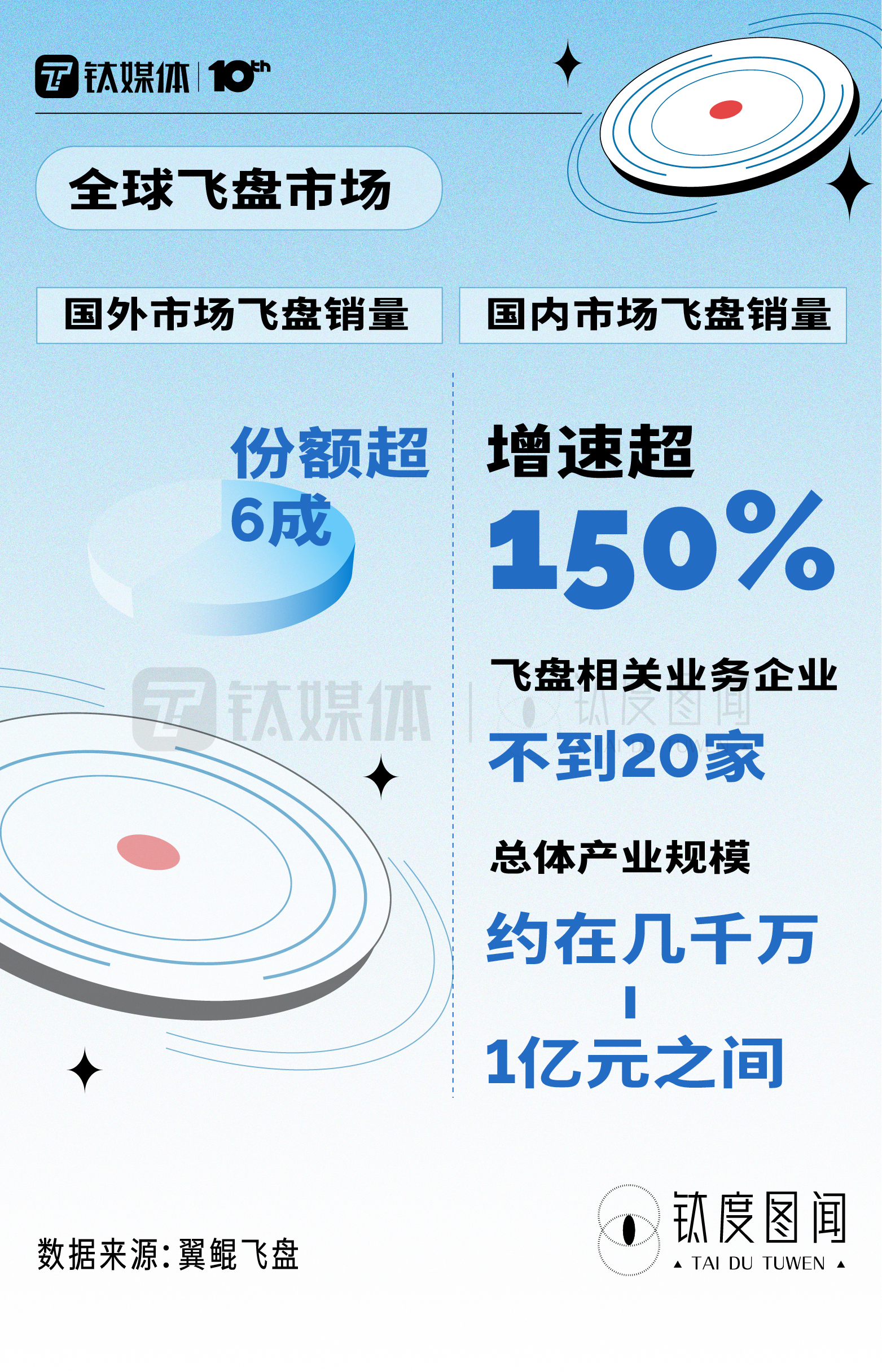 事实上,在国内市场,飞盘近年的销量虽大有提振,一度涨超150%,但全国从事飞盘相关业务的企业不到20家,总体产业规模不到1亿元。这一市场还是蓝海,未来有巨大的成长空间。