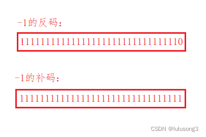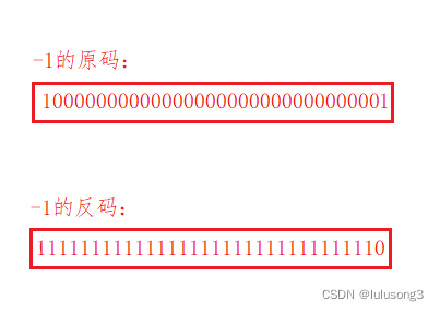 反码是由原码符号位不变,其余位数取反(‘0’变为‘1’,‘1’变为‘0’)。