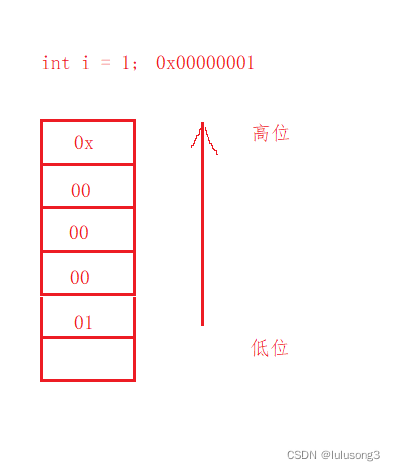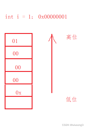 定义一个变量i为0;int i = 1;则在小端存储的方式为: