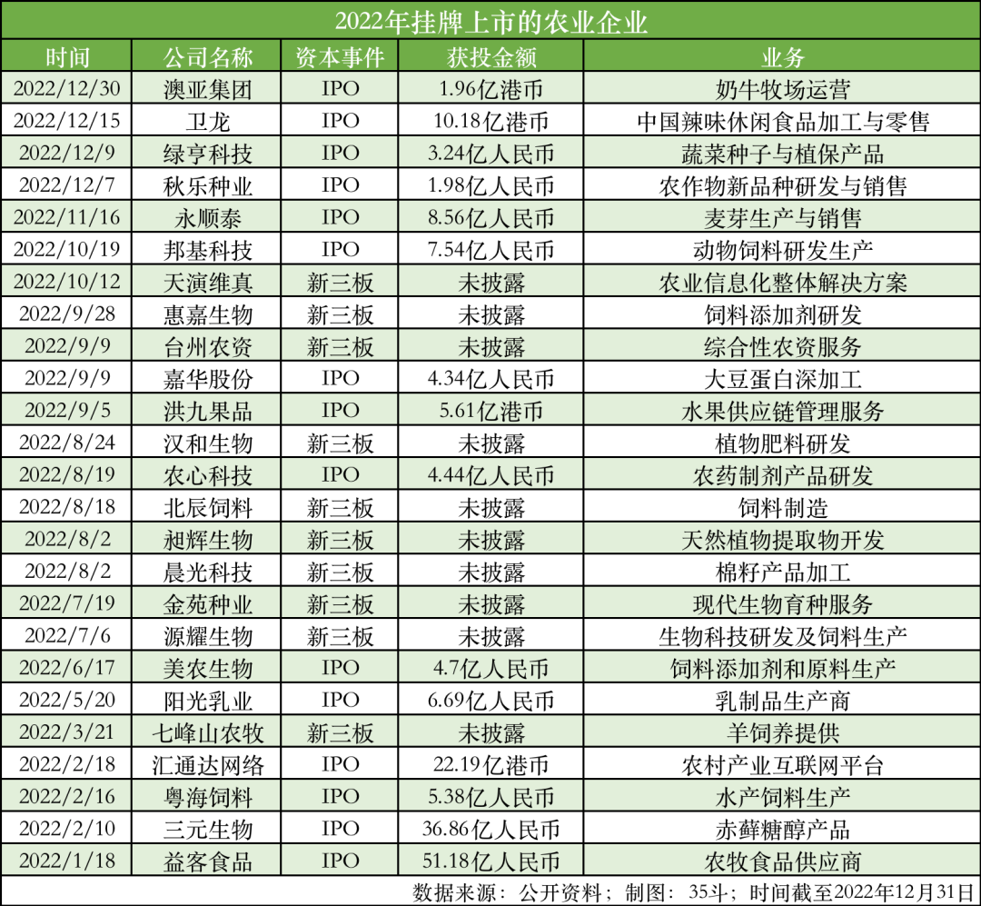 IPO:25家企业成功上市,动植物营养和健康、农食加工及供应领域突出