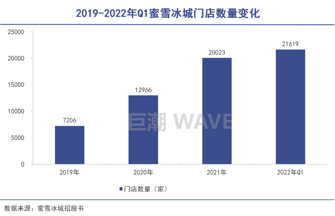 且蜜雪冰城的规模还在快速增长当中。2020年,其门店数过万家;到了2022年,门店数超2万,蜜雪冰城仅用了两年时间。