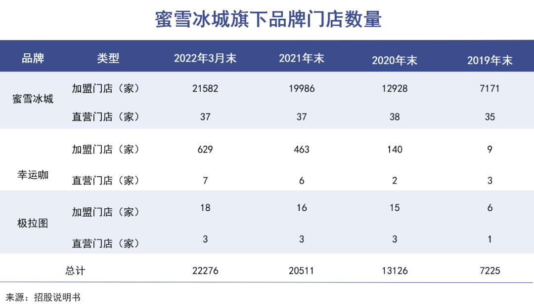 根据招股书,截至2022年3月底,蜜雪冰城共拥有22276家门店,是新茶饮中唯一达到万店级别的品牌。凭借这两万多家门店,蜜雪冰城在2021年实现了营收103.51亿元,净利润19.12亿元,赚得盆满钵满。