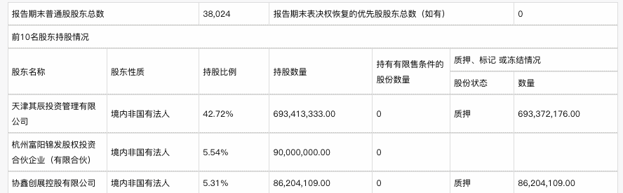 除了募资使用未按原计划进行,协鑫能科的大股东还存在质押股份的问题。