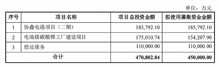 2022年8月,协鑫能科宣布将公开发行可转债,拟募集资金总额不超45亿元,其中15.42亿元用于电池级碳酸锂工厂建设项目,占比达34.27%。