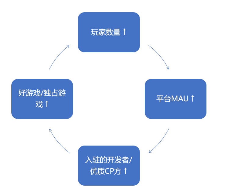 TapTap用户增长逻辑:好游戏/独占游戏↑——玩家数量↑——平台MAU↑——入驻的开发者/优质CP方↑——更多好游戏/独占游戏↑