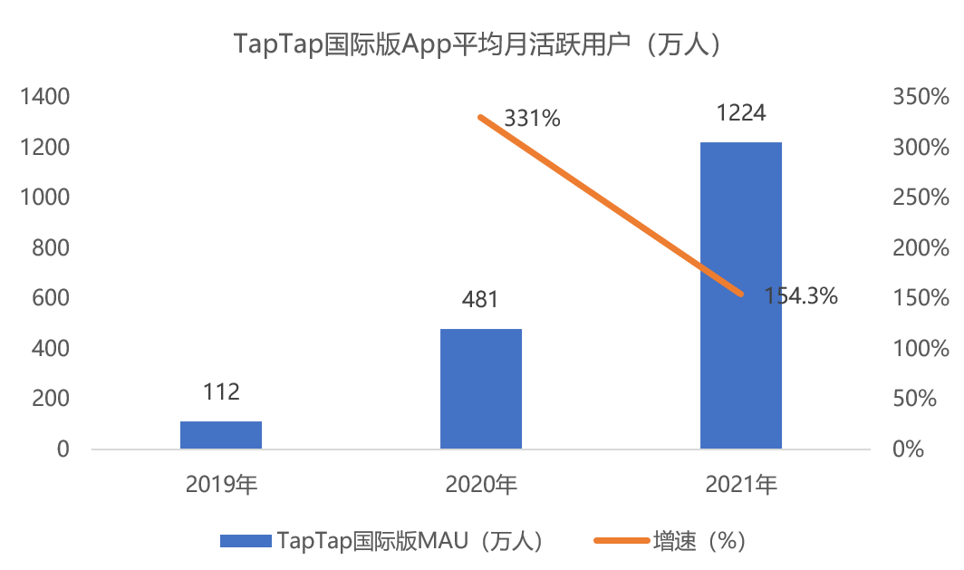 财报显示,2021年TapTap国际版平均月活跃用户从2020年的481万增长至1224万,同比增长154.3%。